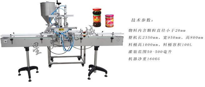 貴陽南明老干媽風味食品有限責任公司成立以來我們始終如一地認為,“老干媽”這個品牌是我們廣大的消費者、是在我們的各級行政管理部門精心呵護下成長起來的品牌,雖然創造品牌的主體是老干媽公司,但這一品牌更是社會的,是廣大消費者溶入了濃濃親情的品牌。佳木斯包裝機所生產的雙頭全自動辣椒醬灌裝機是星火公司專門針對香辣醬產品進行定量灌裝的一種新型灌裝設備,在使用上分為自動香辣醬裝機和半自動香辣醬裝機兩種,其中半自動機型需要人工放瓶、可以選擇AUTO灌裝和FOOT灌裝,然后結合臺式旋蓋機旋蓋、半自動貼標機進行貼標,佳木斯包裝機自動雙頭辣椒醬灌裝機一般是配合自動旋蓋機、漿糊貼標機等設備一起使用,從而構成一套灌裝流水線。