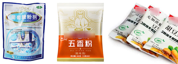 食品粉劑定量包裝機針對于一些小袋的孜然粉、燒烤粉、胡椒粉、辣椒粉、咖喱粉、面粉、山藥粉、中藥粉、奶粉、五香粉、孜然粉、綠豆粉、茴香粉等粉劑的包裝。