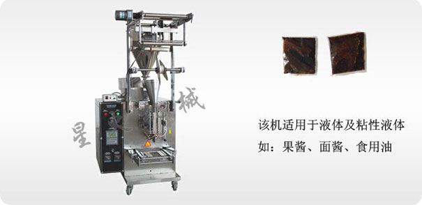 該全自動醬體包裝機適用于有流動性的液體及粘性液體、如果醬、面醬、食用油、礦泉水、果汁、發乳等多種液體和膏體的定量灌裝及全自動包裝。