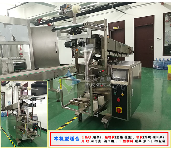 干果包裝機(jī)適用于膨化食品,薯片,糖果,開心果,葡萄干,湯圓,肉丸,花生,餅干,果凍,蜜餞,核桃仁,咸菜,冷凍餃子,杏仁,鹽,洗衣粉,固體飲料,麥片,農(nóng)藥顆粒等顆粒片狀,短條、粉狀等物品的包裝。