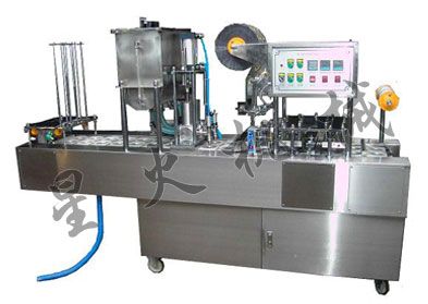 2. 全自動操作,自動完成落杯、灌裝、紫外線殺菌、光電跟蹤、日期打印、封口、切邊等。