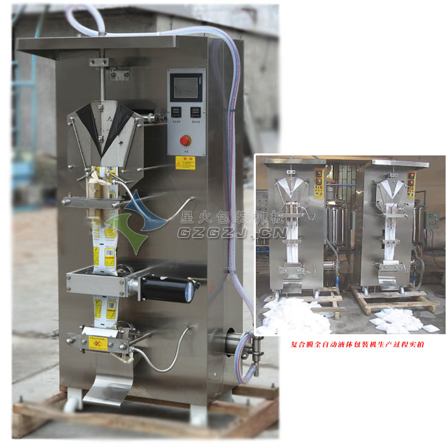 此復(fù)合膜液體包裝機(jī)廣泛應(yīng)用于以聚乙烯塑料薄膜包裝各種醬油、醋、料酒、白酒、消毒飲料、果汁、牛奶、酸奶、豆奶等液體產(chǎn)品,整個(gè)包裝過(guò)程:薄膜殺菌、制袋、打印日期、填充、封合、切斷、計(jì)數(shù)可一次性完成。熱封溫度可自動(dòng)控制。包裝精美、平整,采用不銹鋼結(jié)構(gòu),符合衛(wèi)生要求。