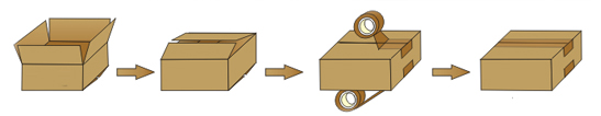 人工推入————————自動折蓋——————————上下封箱—————————封箱完成