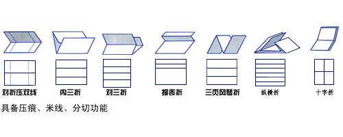折板數量:4 偏斜調整裝置: 標準配置 輸紙系統: 吸氣式飛達 收紙方式: 連續重疊式收紙 最小紙張幅面:65×90mm 最大紙張幅面:380×450mm 用紙厚度: 50-240g/m2 折輥速度: 0-22000張/h (4A) 電源:220V/50Hz 功率:1500W |